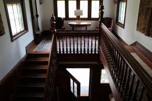 As I was welcomed by the owners, I glanced at the hall centerpiece, a magnificent mahogany staircase and was expecting to hear Orson Welles shout “Action!” It felt as though I had been transported to the stage of the classic movie, “The Magnificent Ambersons.” Walking up to the first floor, I visited large and handsome rooms with tiled fireplaces, some with views of an immaculate lawn and swaying tree line in the background.