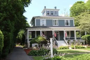 The inn is a peaceful oasis that is a short walk from the Westbrook Beach. The inside is decorated with pictures of schooners and antique helms to remind us that the home once belonged to Elbert Stannard, a famous sea captain. In the music room, pictures of silent movie stars and a baby grand piano evoke the roaring 1920s.